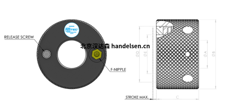 Amtec飛機(jī)品質(zhì)鋁系列 F-9.4 & F-9.10由手動(dòng)或電動(dòng)潤(rùn)滑脂泵驅(qū)動(dòng)。自調(diào)心環(huán)形止推環(huán),最大軸向行程為 4 或 10 毫米。