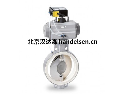 帶氣動密封套的蝶閥,此處帶氣動旋轉執行機構。定位器和流化底座特別適用于計量任務。